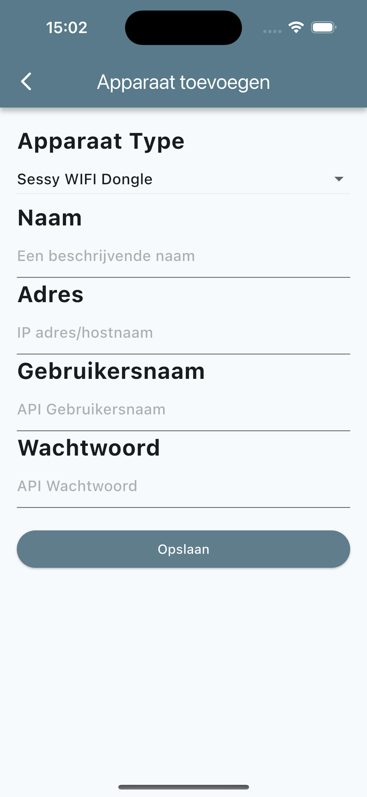 Adres bevat het ip-adres/de hostnaam van het apparaat. Je kunt deze gegevens vinden in het sessy portaal (https://portal.sessy.nl)