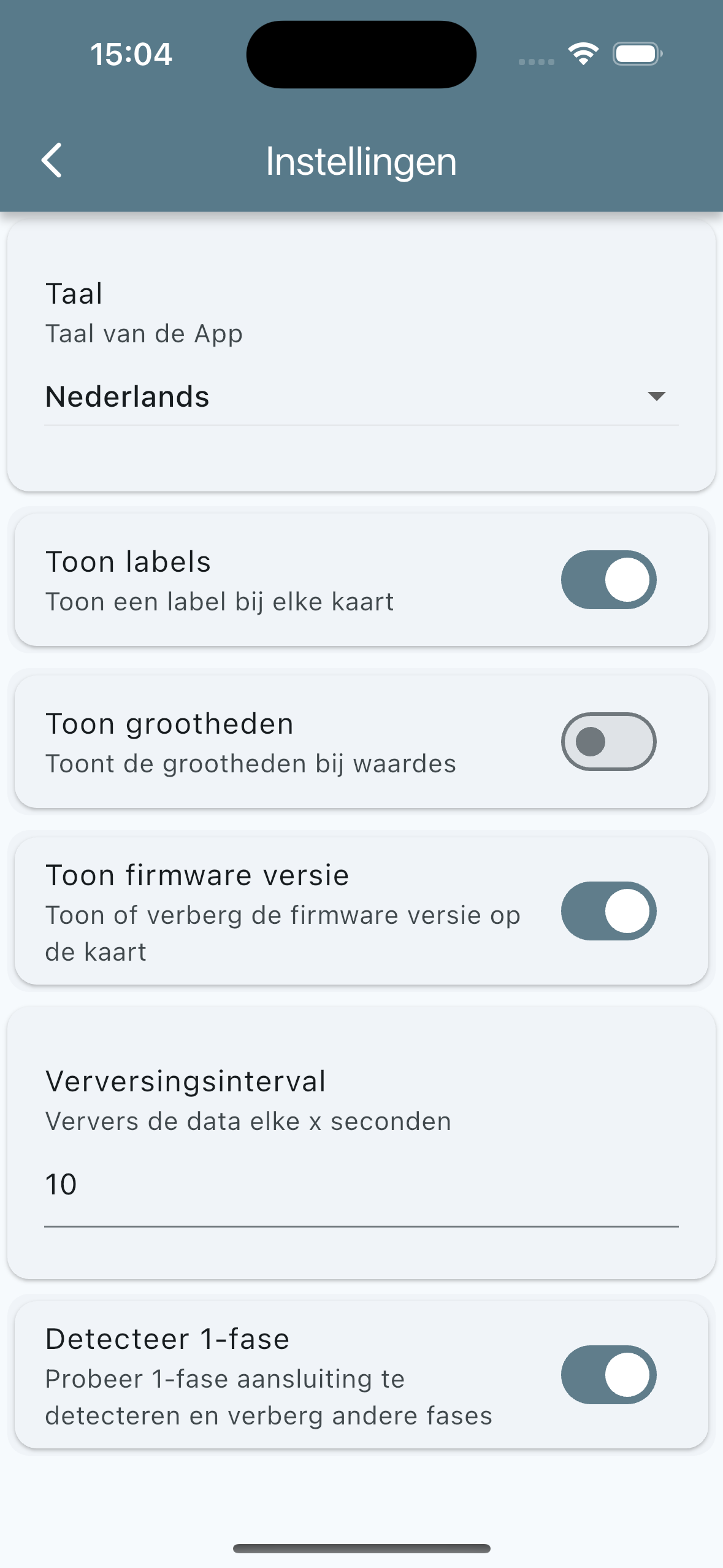 Hiermee probeert de app te detecteren of er een 1-fase aansluiting in gebruik is. Hierdoor worden de andere fases niet getoond.